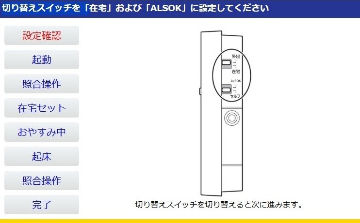 「在宅ALSOK警備を開始します」のアナウンスが流れたら、「在宅ALSOK」の設定完了です。