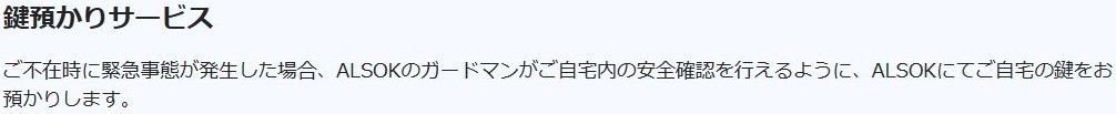 「旅行や帰省で自宅を空けることが多い。共働きで日中は自宅に大人がいない」場合などは、アルソックに鍵を預ける選択肢もあります。