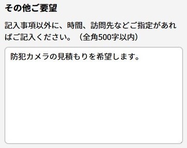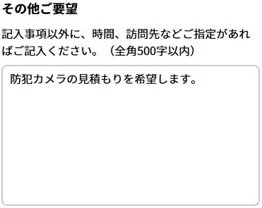その他ご要望欄に「防犯カメラの見積もり希望」と書いておくだけでOKです。