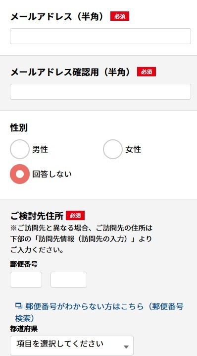 公式サイトの「見積もり依頼」をクリックして、見積依頼の入力フォームに入ります。