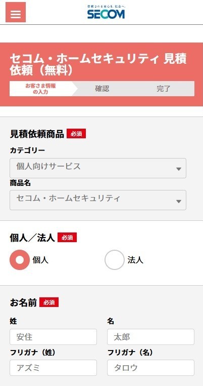 「セコム・ホームセキュリティ 見積依頼」と書いてありますが、防犯カメラの見積もり依頼もできるので安心してください。