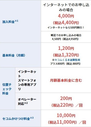 | 位置チェック料金 | ・インターネット ・スマホの専用アプリ →0円 ・オペレーター対応 ※2 →220円(1回) |