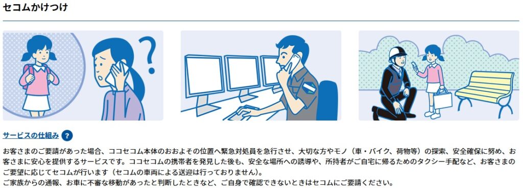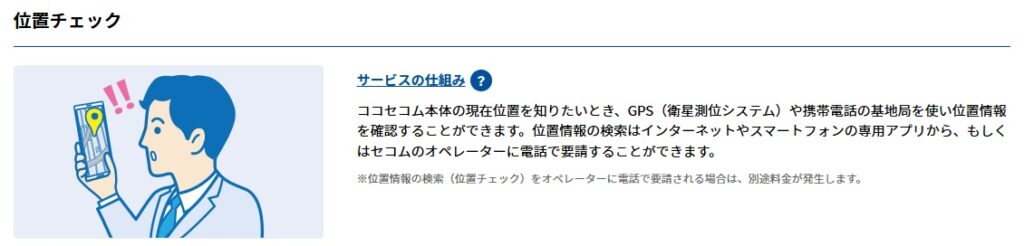 セコムの資料には、ココセコムについて詳しく書いてあります。